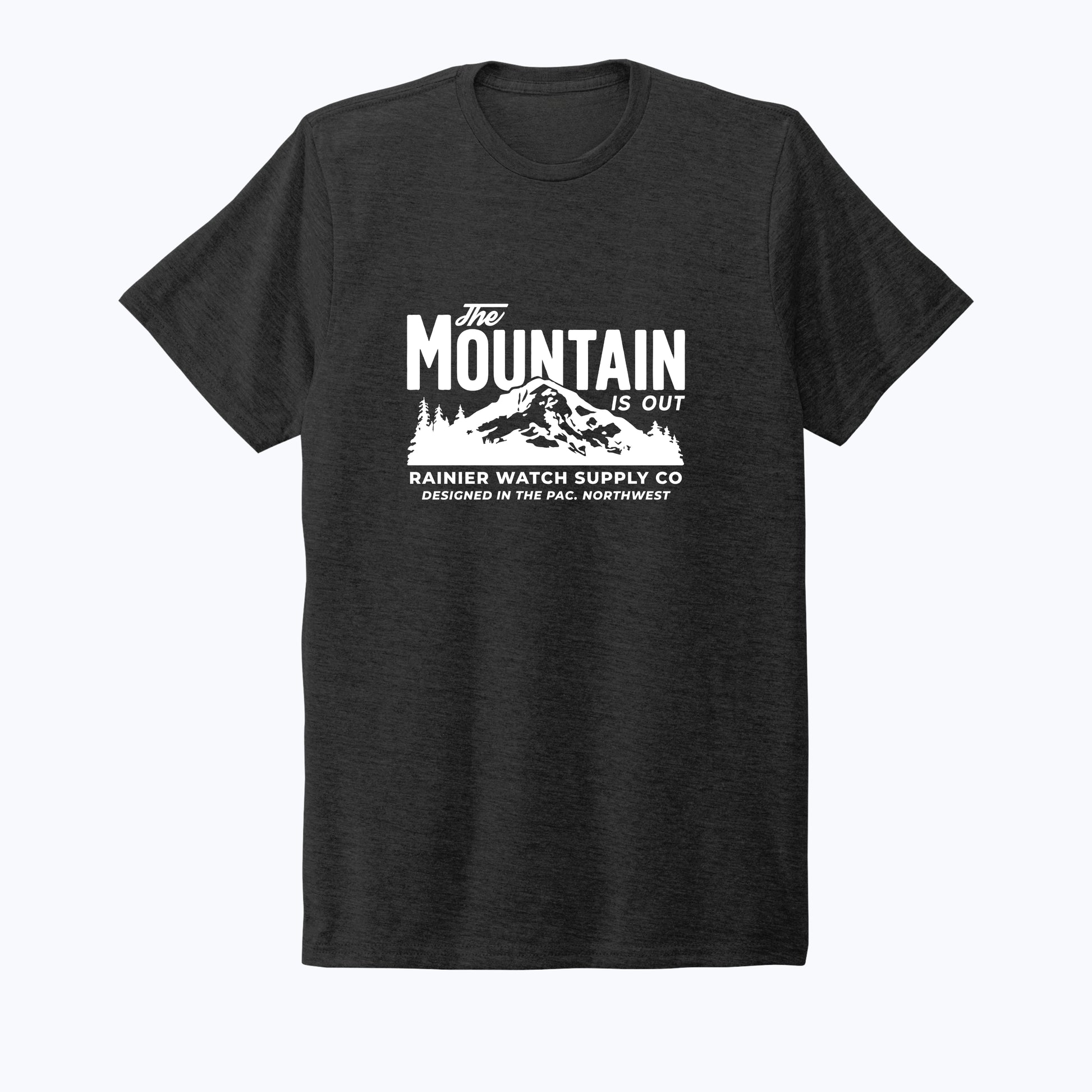 Celebrate the most iconic phrase in the Pacific Northwest — “The Mountain is Out” — now available in a striking Space Black! This is the shirt that helped put Rainier Watch on the map, and it's perfect for those days when Rainier is showing off.