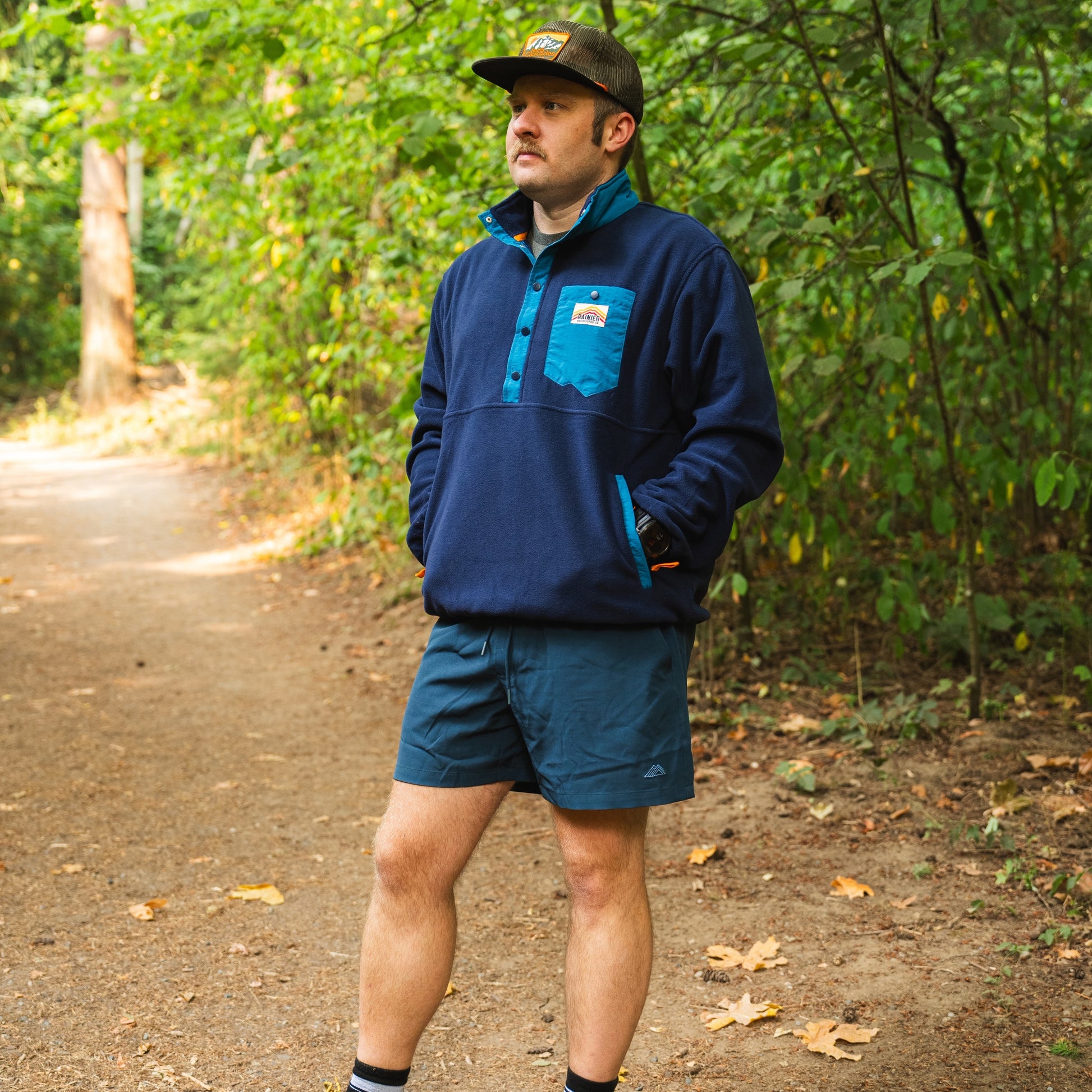 Meet the Turbo Recycled Fleece Pullover Jacket! This is your go-to layer for crisp coastal mornings and misty mountain hikes. Made from 100% recycled fleece, this pullover is as kind to the planet as it is cozy. The navy hue adds a classic touch, while the warm, layered interior locks in heat without weighing you down. Featuring a zippered chest pocket, cotton fleece-lined hand pockets, and our signature “ITMO?” embroidery subtly stitched on the back neck, because if you know, you know. And the best part? A portion of every sale helps protect our cherished National Parks.
